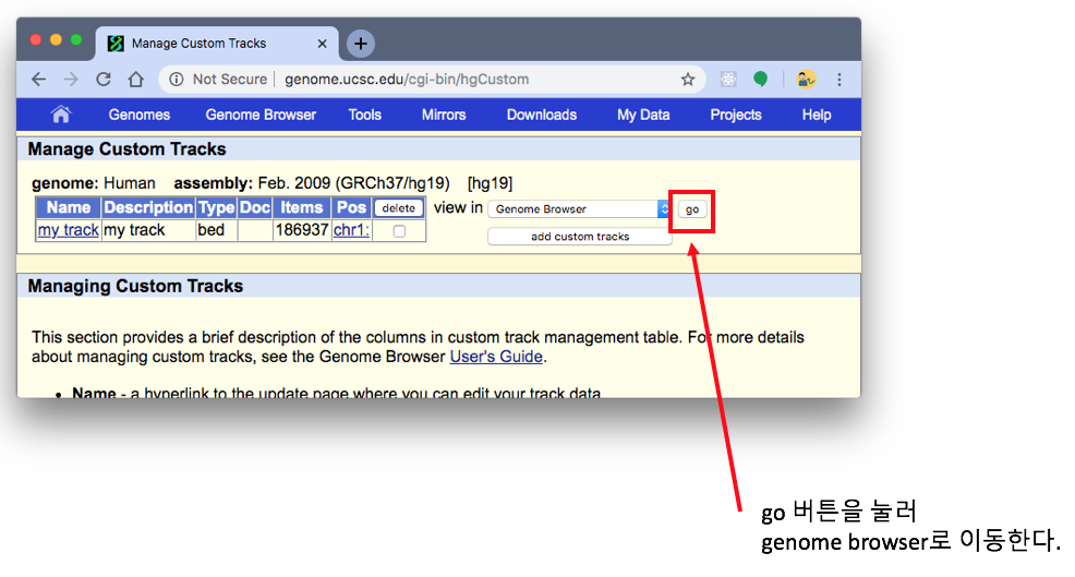 8) go 버튼을 눌러 genome browser로 이동한다.