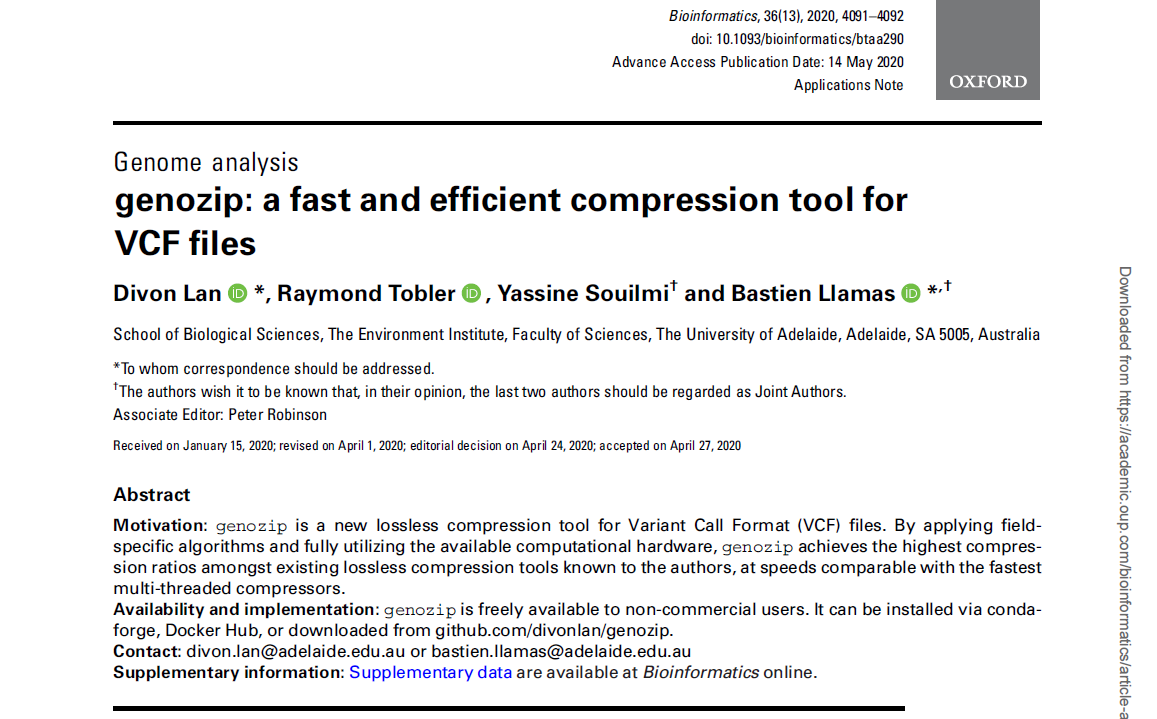 저널의 제목은 genozip: a fast and efficient compression trool for VCF files 입니다