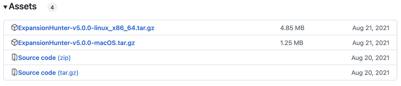 wget https://github.com/Illumina/ExpansionHunter/releases/download/v5.0.0/ExpansionHunter-v5.0.0-linux_x86_64.tar.gz