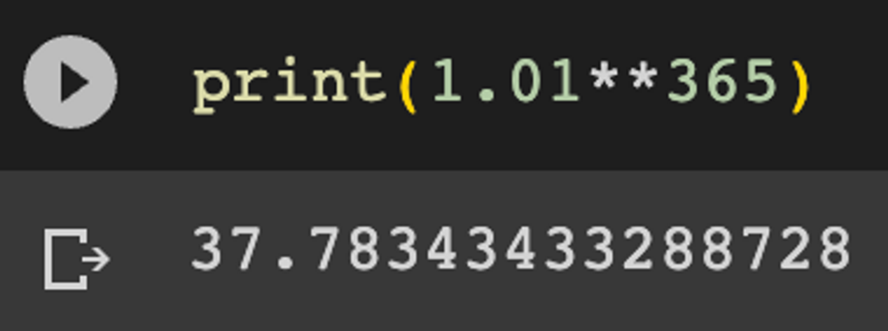 1%씩 365일 동안 성장하면 37.78배 성장할 수 있습니다.